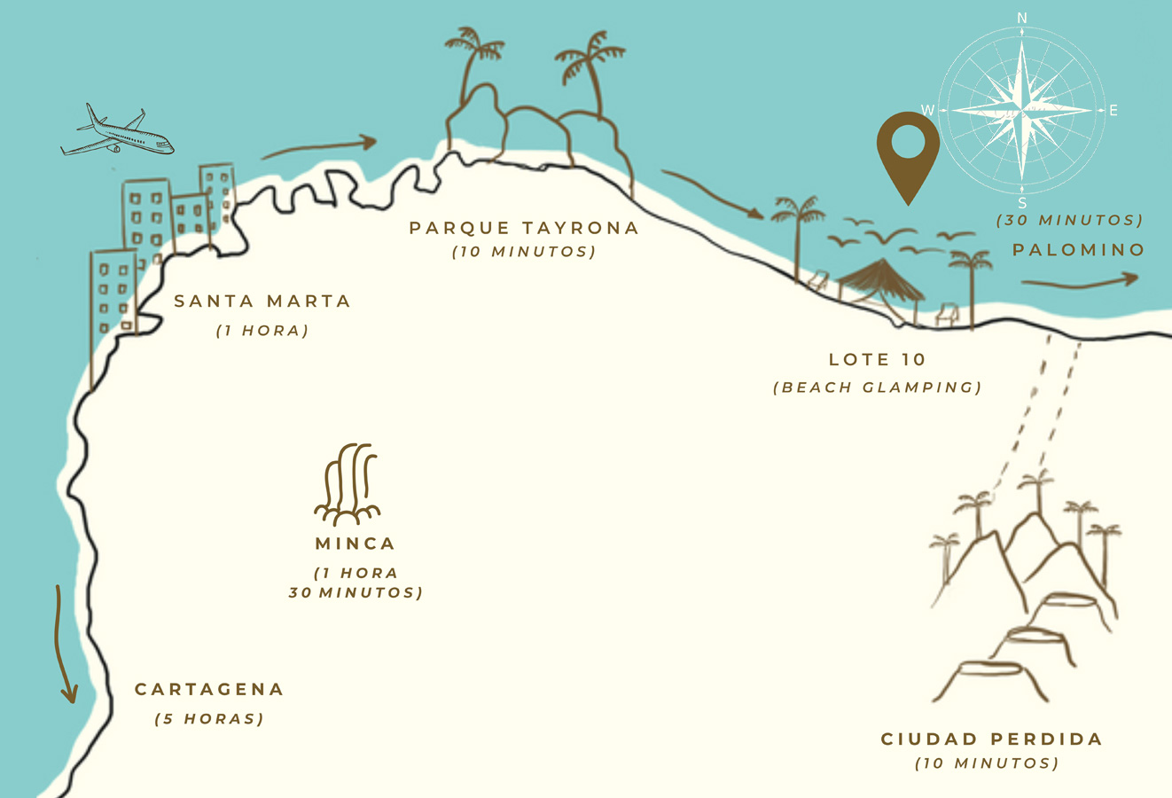 We are a glamping hotel with a rustic luxury style located on Colombia's Caribbean coast, very close to Tayrona Park and the Sierra Nevada de Santa Marta.